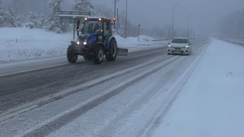 Kar yağışının başlamasıyla birlikte Karayolları ekipleri, yol güzergahları üzerinde kar küreme ve tuzlama çalışması yaptı.