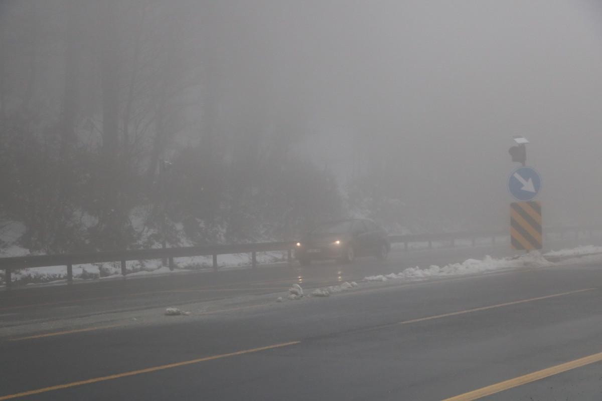 Bolu Dağı’nın Karanlıkdere ve Seymenler mevkisinde sis nedeniyle görüş mesafesi yaklaşık 30 metreye kadar düştü.