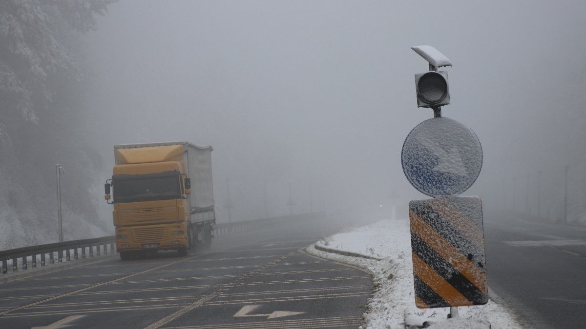 D-100 kara yolunun Bolu Dağı geçişinde sis etkili oluyor.