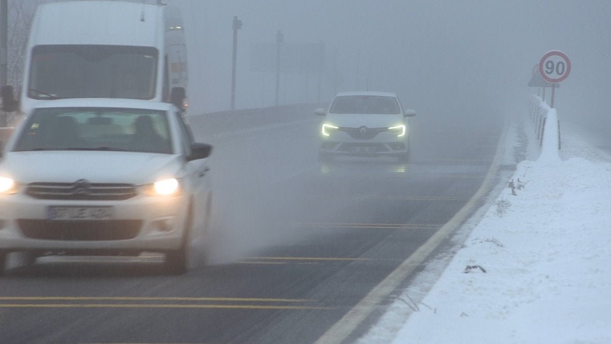 - Bolu Dağı'nın D-100 kara yolu geçişinde sis nedeniyle görüş mesafesi 30 metreye düştü.