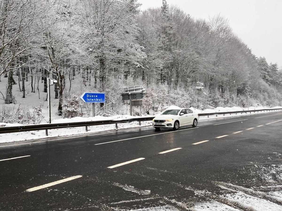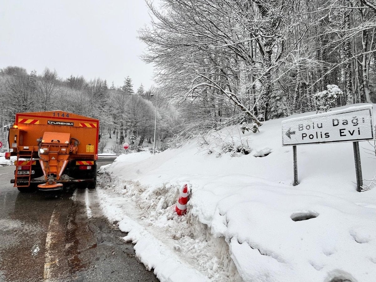 Bolu Dağı'nın D-100 kara yolu geçişinde gece kar yağışı aralıklarla etkili olurken, sabah saatlerinde durdu.