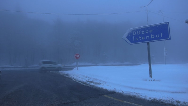 Bolu Dağı geçişinde gece saatlerinde başlayan kar yağışı, aralıklarla devam ediyor. Sis nedeniyle de görüş mesafesi, yaklaşık 30 metreye düştü.
