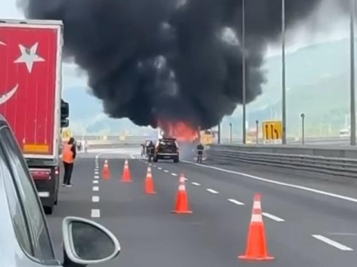 İstanbul yönüne ilerleyen Kenan B. yönetimindeki 34 MTC 935 plakalı, 33 yolcuyu taşıyan otobüs, saat 10.00 sıralarında Anadolu Otoyolu Bolu Dağı 1’inci Viyadük mevkisinde motor bölümünden aniden alev aldı.