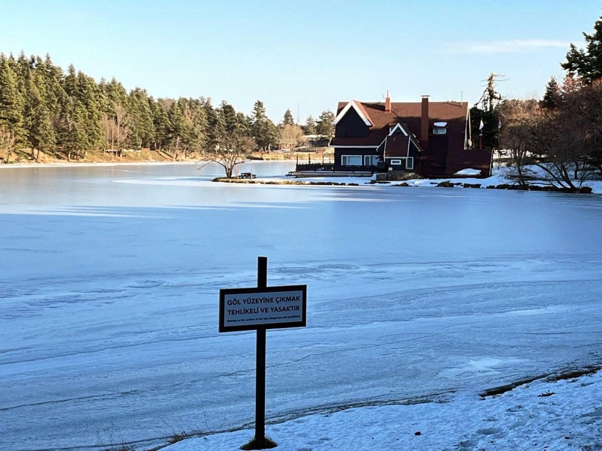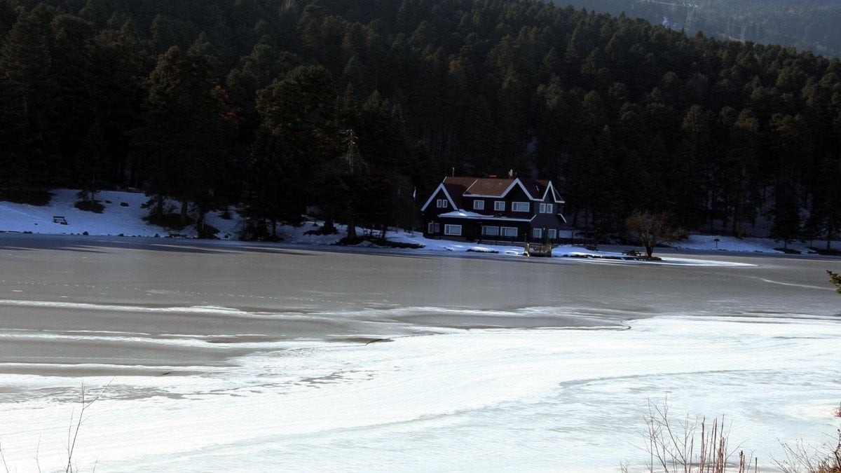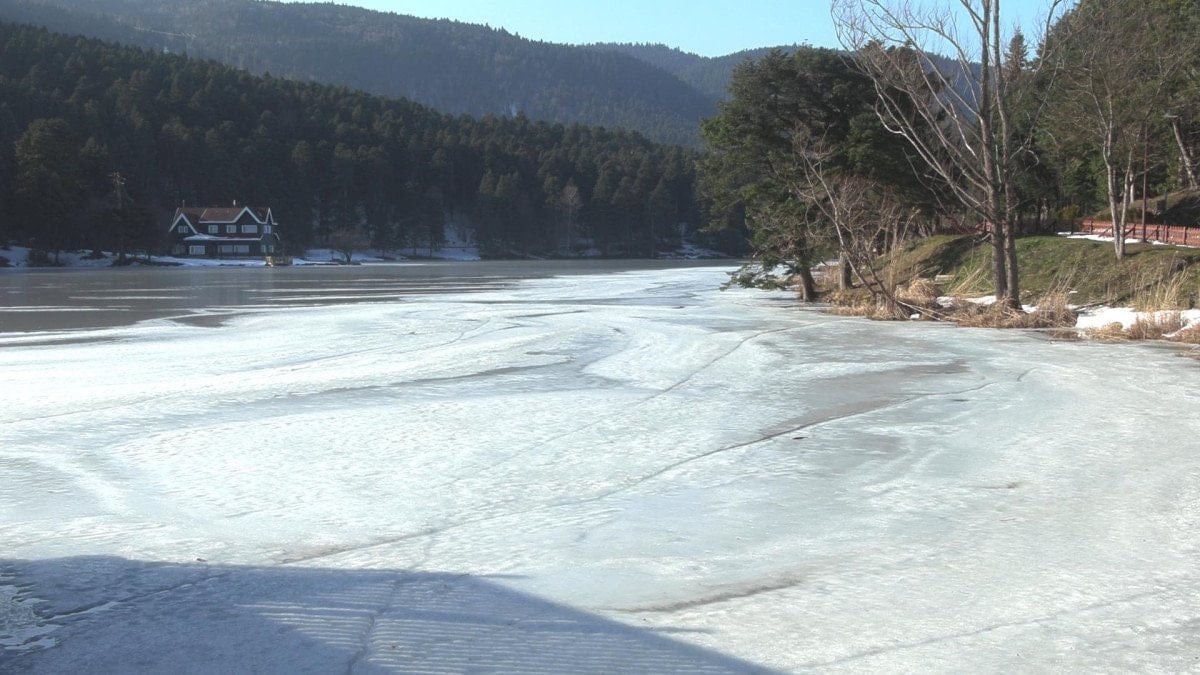 - Bolu'daki Gölcük Tabiat Parkı'ndaki göl, soğuk hava nedeniyle buz tuttu.