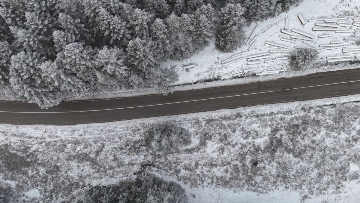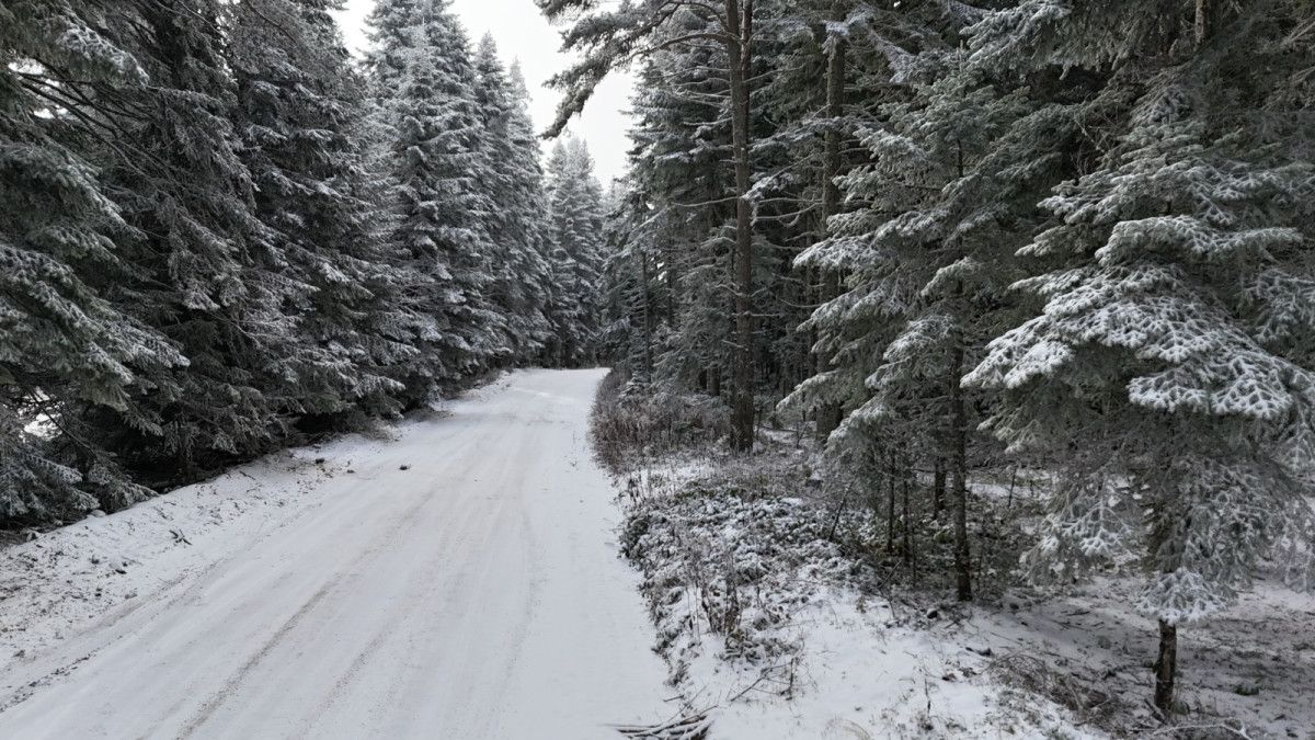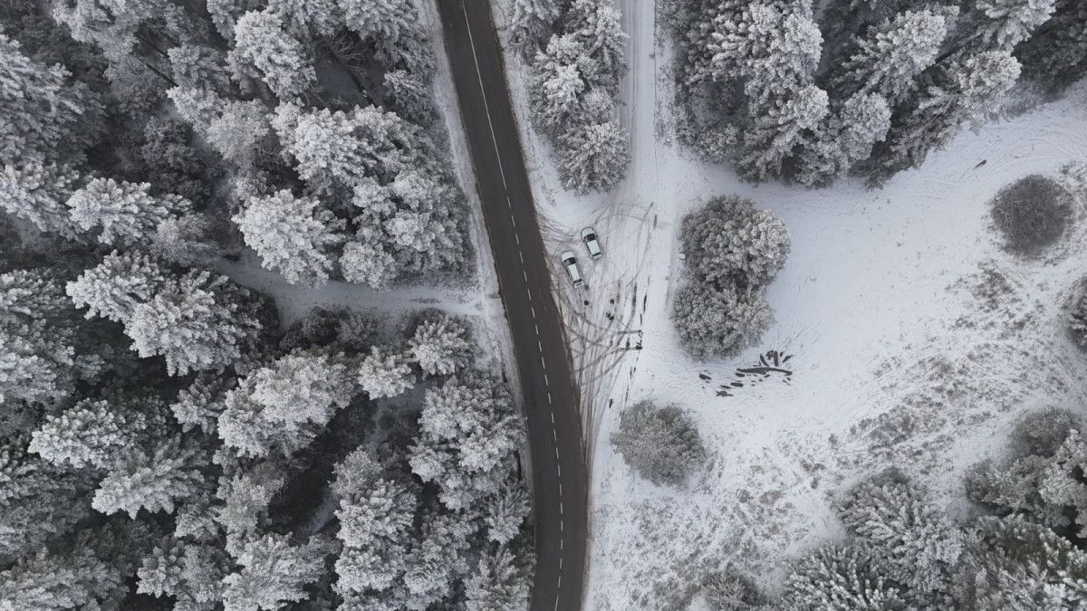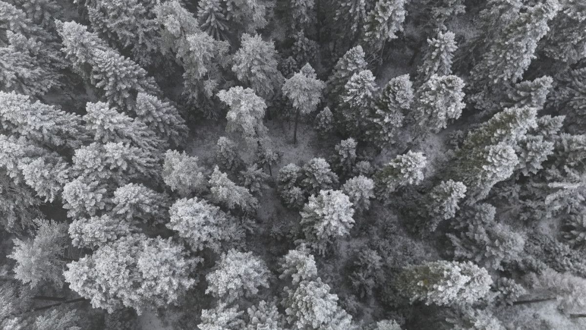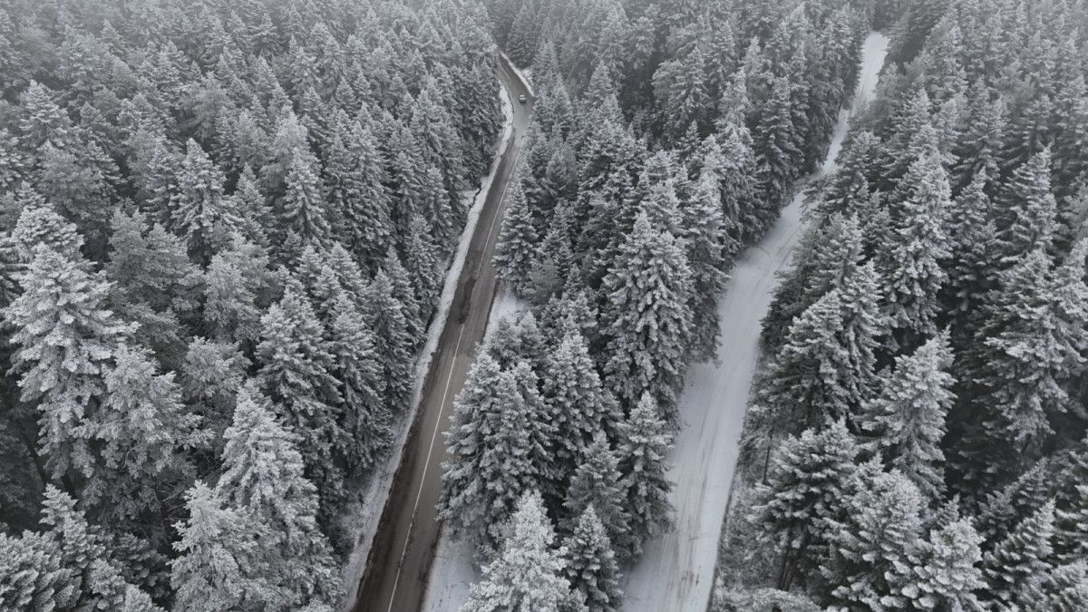 Karla kaplanan ormanlar, drone ile görüntülendi.