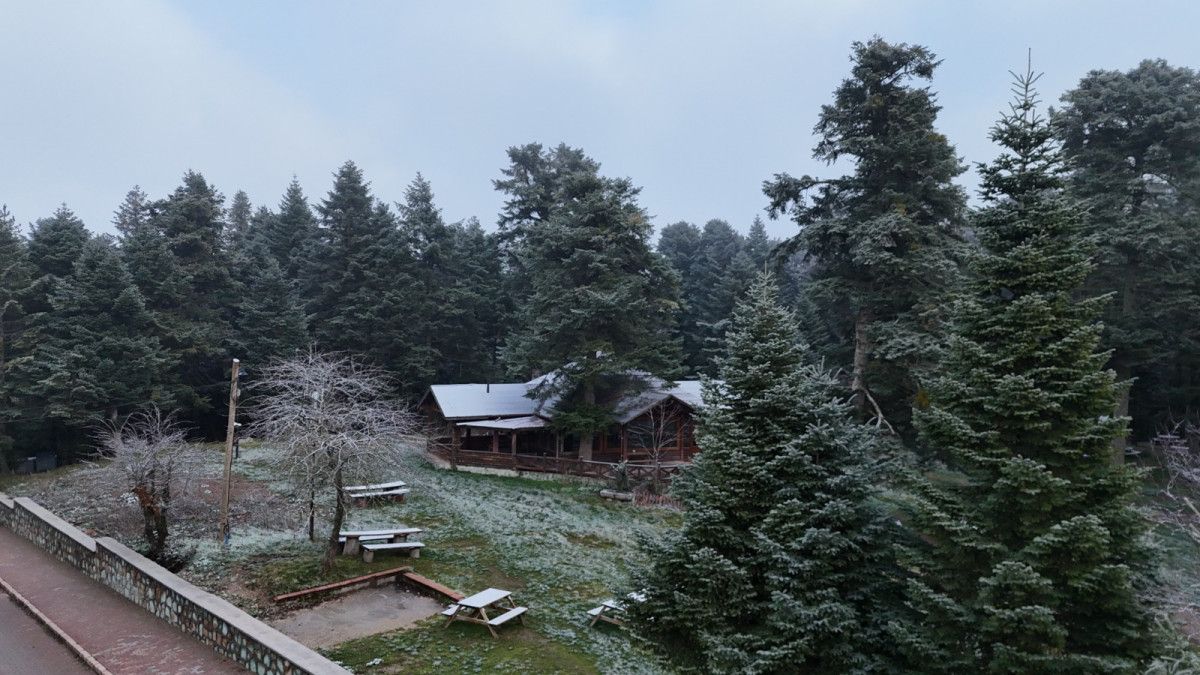 Yağışla birlikte kent merkezine 10 kilometre uzaklıktaki Gölcük Tabiat Parkı'nı çevreleyen çam ormanları karla kaplandı.