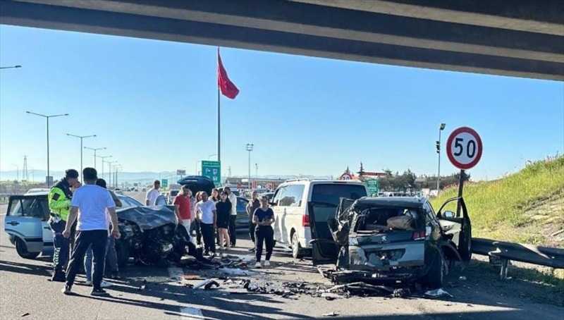 Aynı yönde seyreden dört otomobilin çarpıştığı kazada, 1 kişi hayatını kaybederken, 6 kişi de yaralandı.