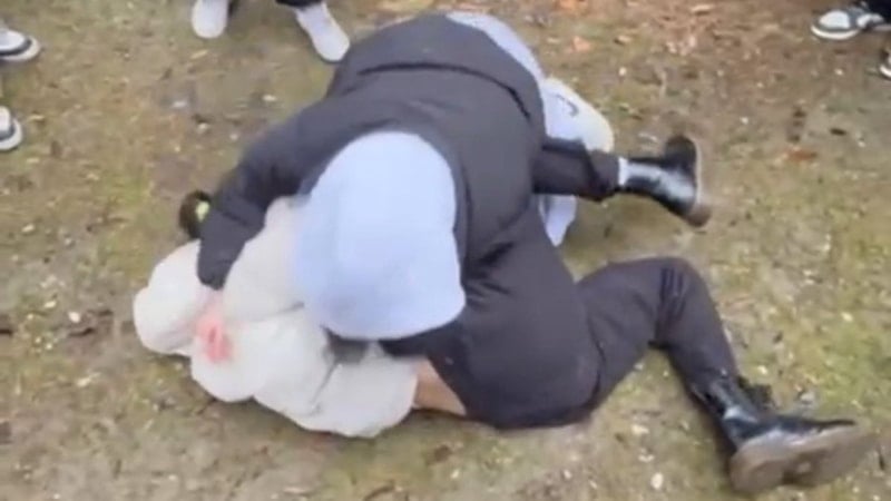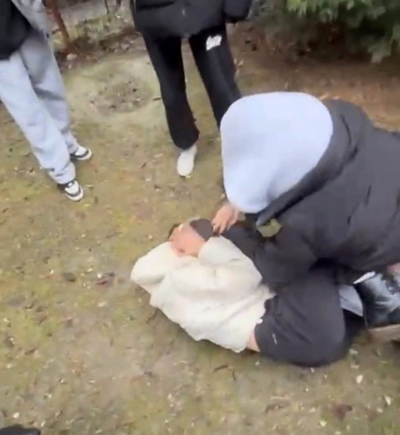 Arbede sırasında yere düşen öğrencilerden birine, parkta bulunan gruptaki diğer kızlar da tekme atarak saldırdı.