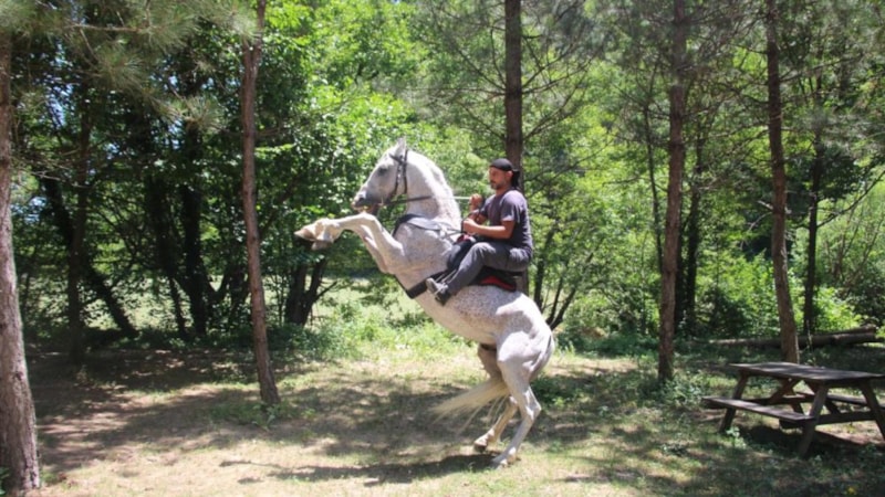 Bolu'da "Allah" denilince şaha kalkan at, sosyal medyada ilgi odağı oldu. Atın sahibi Bülent Temel, "Allah kelimesine alıştırdım. Allah kelimesini duyduğu zaman şaha kalkar" dedi.