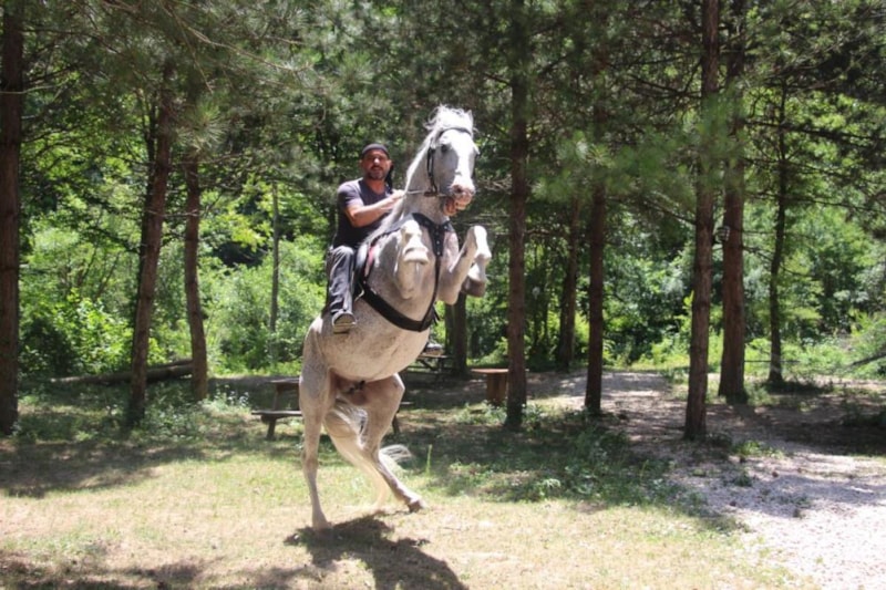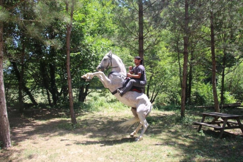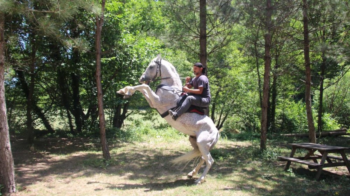 Bülent Temel, özel bir komutla atına şaha kalkmayı öğretti.