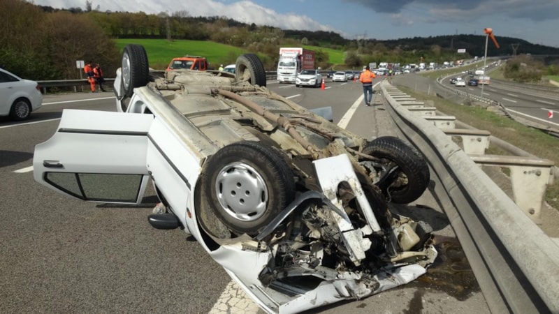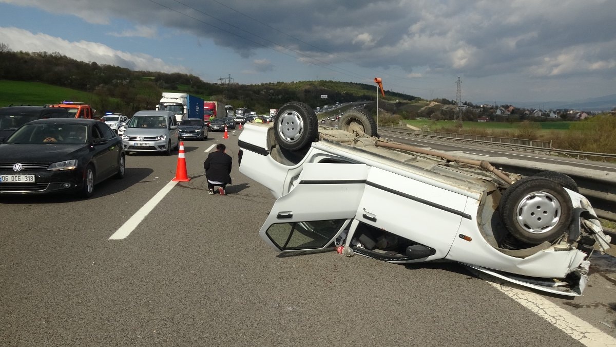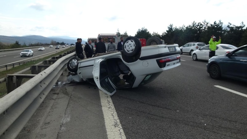 Saat 15.30 sıralarında Anadolu Otoyolu’nun Dağkent mevkiinde, İstanbul istikametine giden Yaşar Yılmaz yönetimindeki otomobil, sürücüsünün direksiyon kontrolünü yitirmesi sonucu bariyerlere çarparak devrildi.