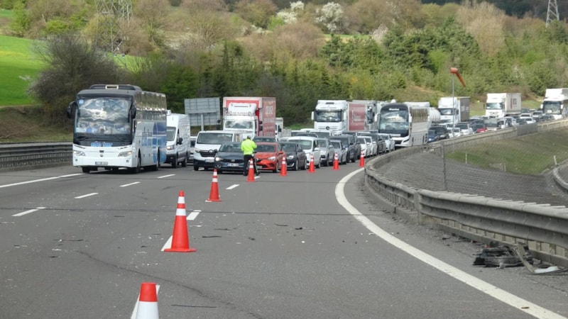 İstanbul yönünde ulaşım bir süre tek şeritten yapılırken kaza yapan aracın yoldan kaldırılmasıyla yeniden normale döndü.