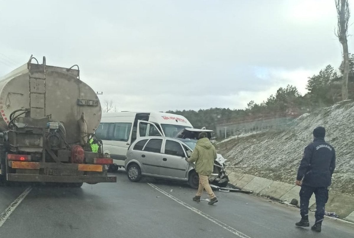 Bolu-Mudurnu kara yolunun Yazılar köyü mevkiinde seyir halindeyken gizli buzlanma nedeniyle kontrolden çıkan Ali Y. idaresindeki otomobille, aynı yönde giden Tahsin G. yönetimindeki yolcu minibüsü çarpıştı.