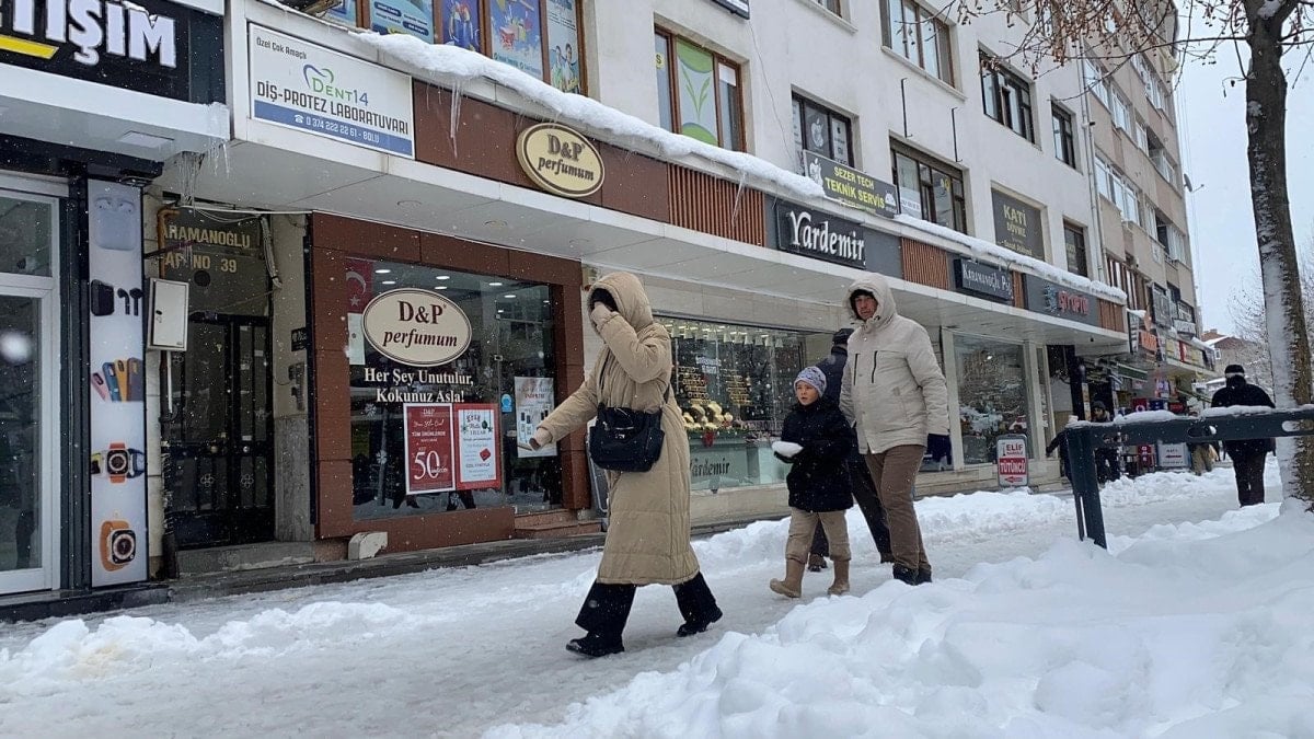 Vatandaşların yoğun olarak kullandığı güzergâhlardan biri olan İzzet Baysal Caddesi’nde de benzer görüntüler yaşandı. Cadde boyunca yer alan iş yerlerinin tabelalarında oluşan buz kütleleri, yürüyüş yapan vatandaşlara zor anlar yaşattı. Olası kazalara karşı birçok kişi kaldırımlarda dikkatli ilerlemek zorunda kaldı.