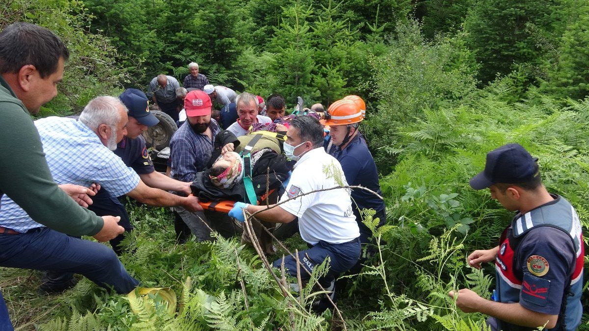 Bolu'da devrilen traktördeki anne ve oğlu yaralı kurtuldu