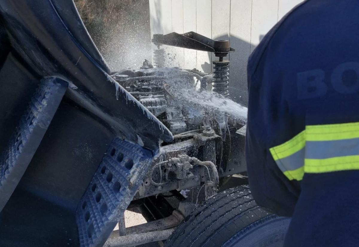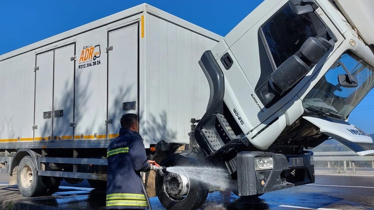 Araçtan dumanların yükseldiğini fark eden sürücü, kamyoneti emniyet şeridine çekip itfaiye ekiplerinden yardım istedi.