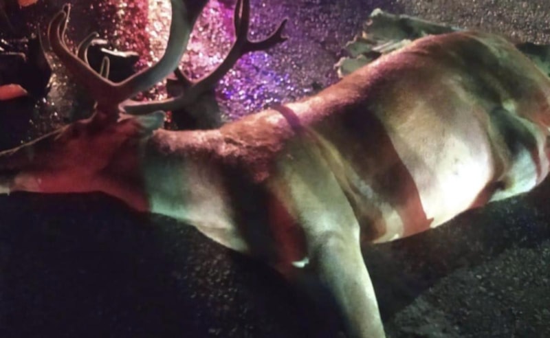 Erol Yerlikaya yönetimindeki hafif ticari araç, çalıştığı iş yerine seyir halindeyken yola aniden çıkan geyiğe çarptı.
