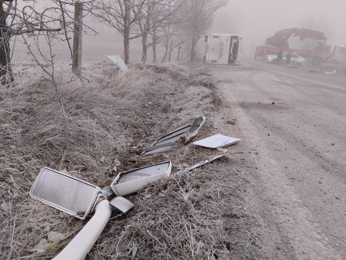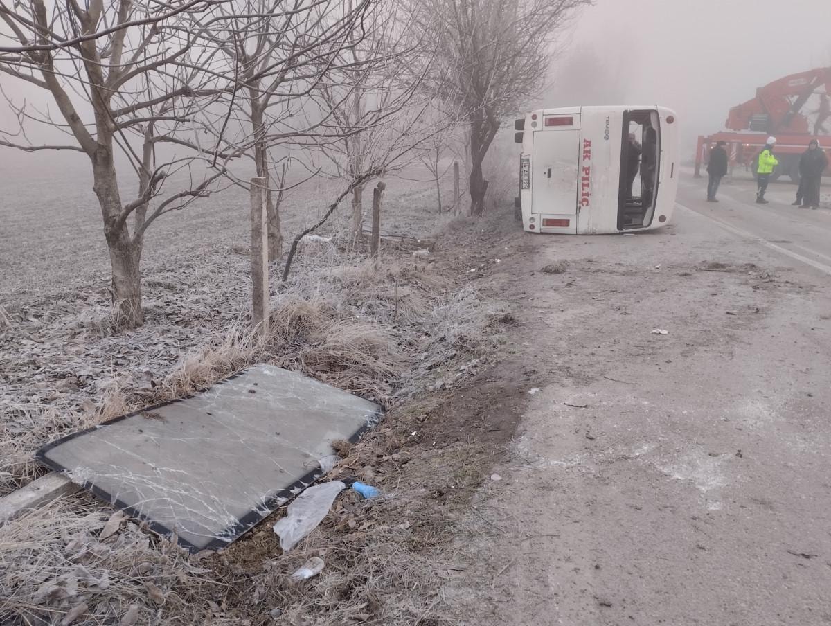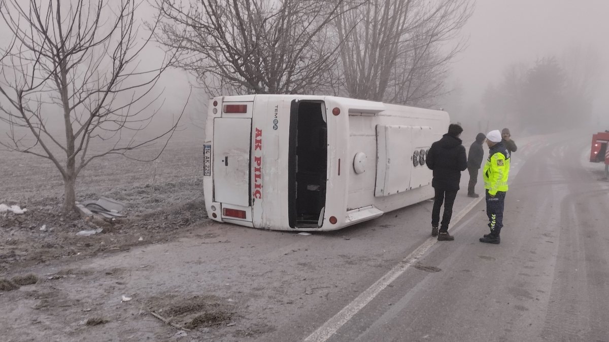 Bolu'nun Yeniakçakavak köyü mevkisinde İsmail Dursun'un kullandığı, fabrikada çalışan işçileri taşıyan minibüs, yoğun sis ve buzlanma nedeniyle kayarak yoldan çıktı.