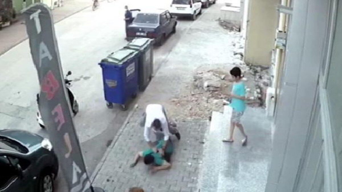 Bolu'da, otomobilden inen 4 kişinin kaldırımda bekleyen kişiyi tekme tokat dövdükleri anlar güvenlik kamerasına yansıdı.