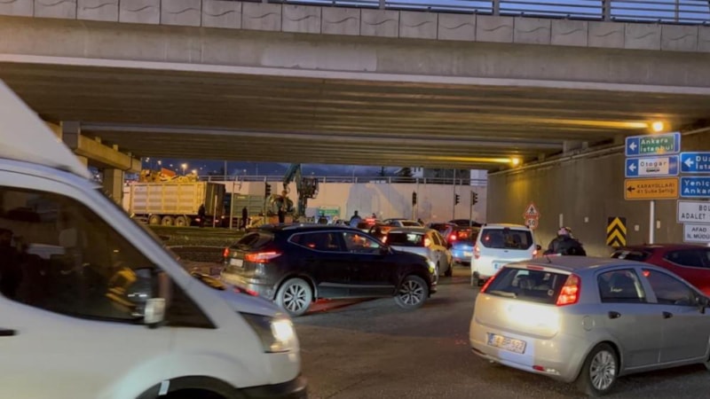 Düşen malzemeler nedeniyle yol trafiğe kapandı.