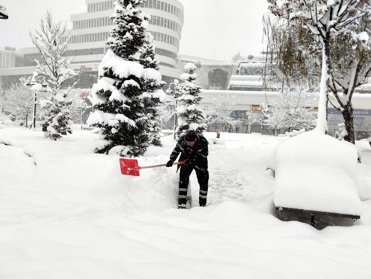 Sabah saatlerinde de yoğun şekilde devam eden kar yağışı nedeniyle kent merkezinde kar kalınlığı yarım metreye ulaştı.