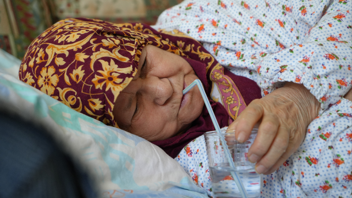 Yaklaşık 1 aydır yatağa bağımlı olarak yatan Çınar, besin ihtiyacını pipetle karşılıyor.