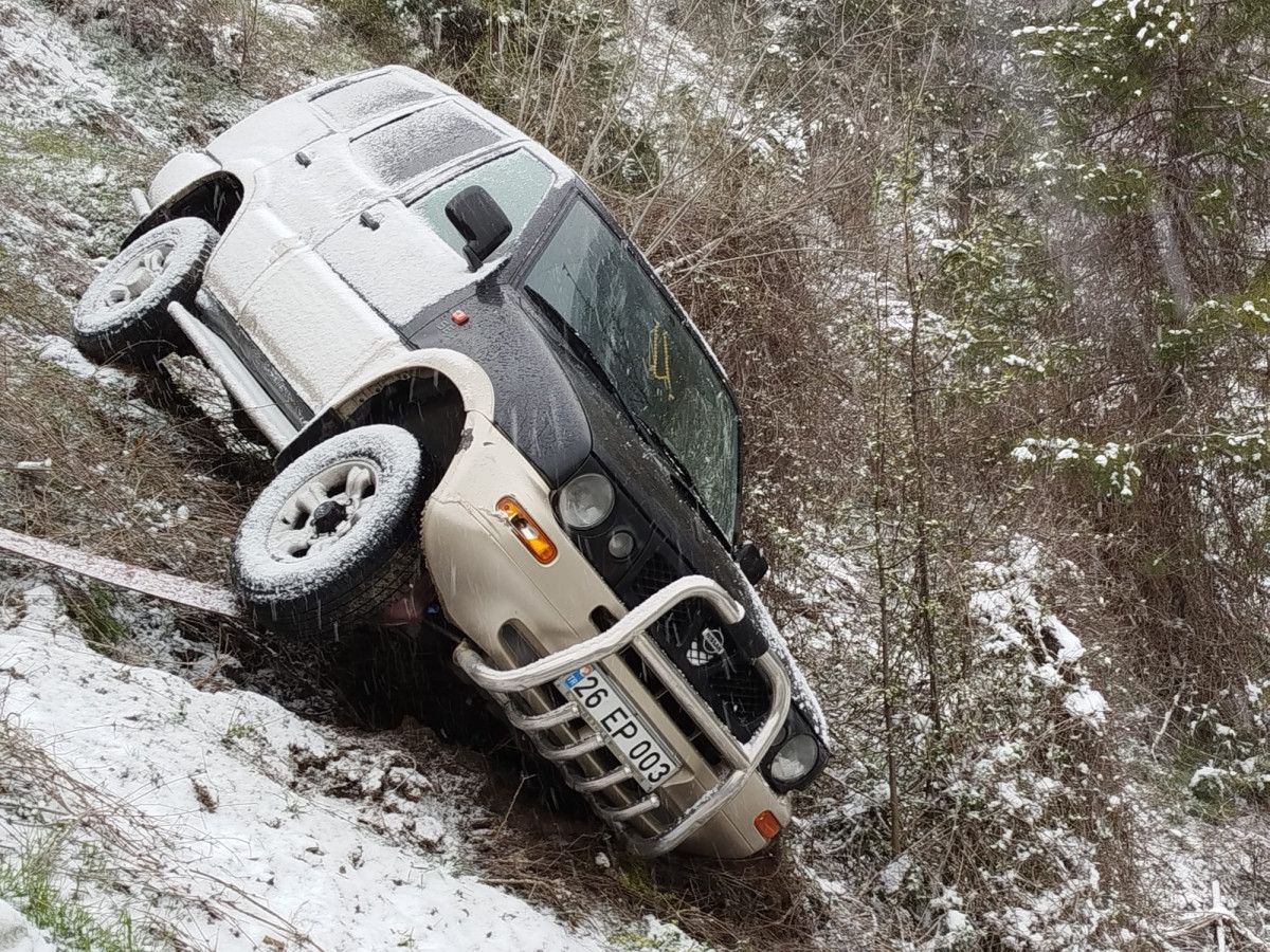 Bolu'nun Mudurnu ilçesinde kar nedeniyle kayganlaşan yolda Yunus A.’nın kontrolünü yitirdiği cip, şarampole devrilip bir ağaca takılarak durdu.
