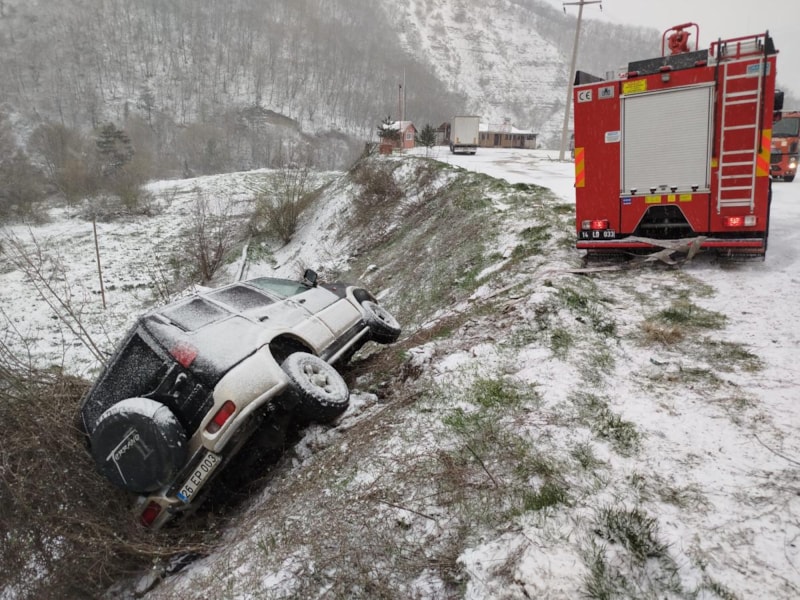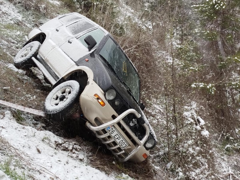 Mudurnu ilçesinde, kar nedeniyle kayganlaşan yolda kontrolden çıkıp şarampole devrilen cipte mahsur kalan ve korna çalarak yardım isteyen sürücüyü, çevredeki sürücüler kurtardı.