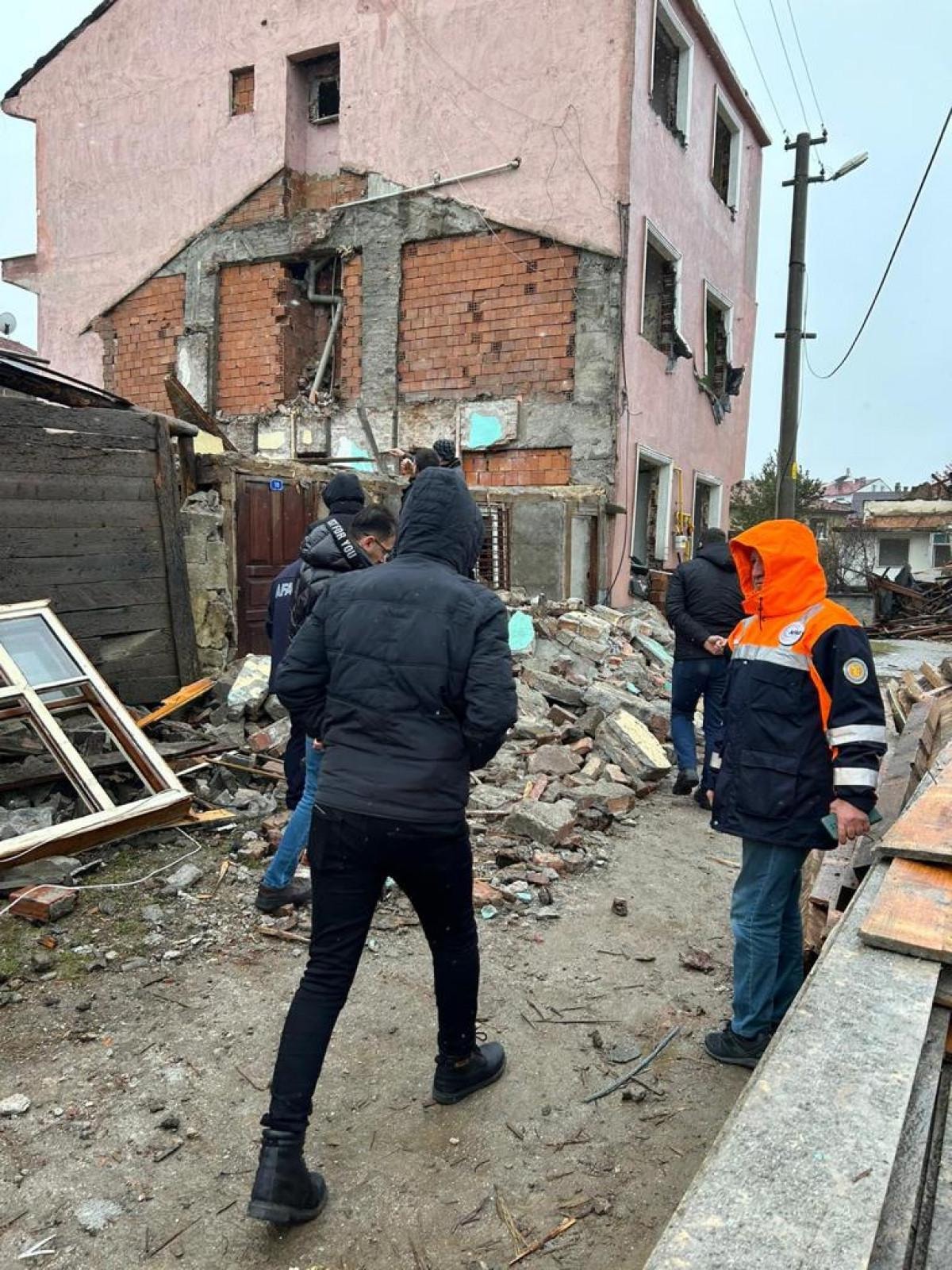 Bu sırada kısmen yıkık olan binanın duvarı çöktü.