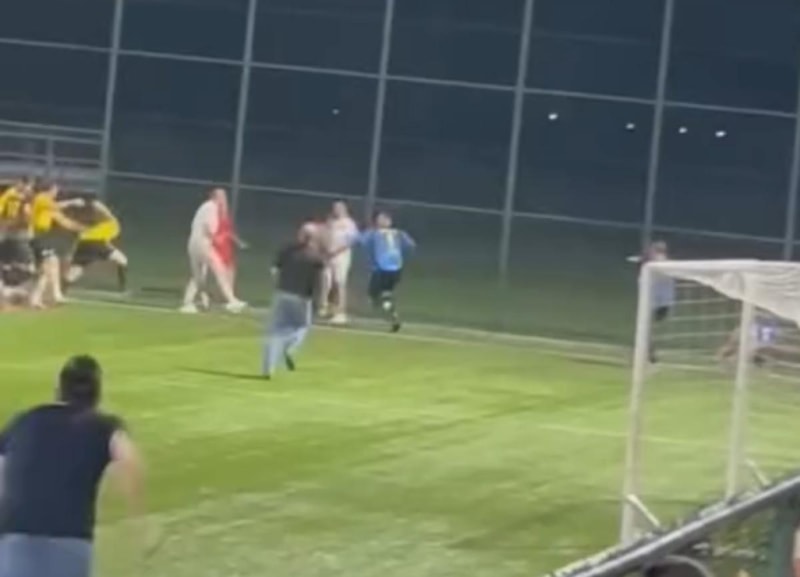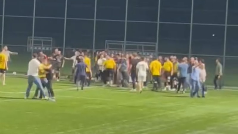 Taraflar güçlükle ayrılırken, olayların ardından maç yarıda bitti.