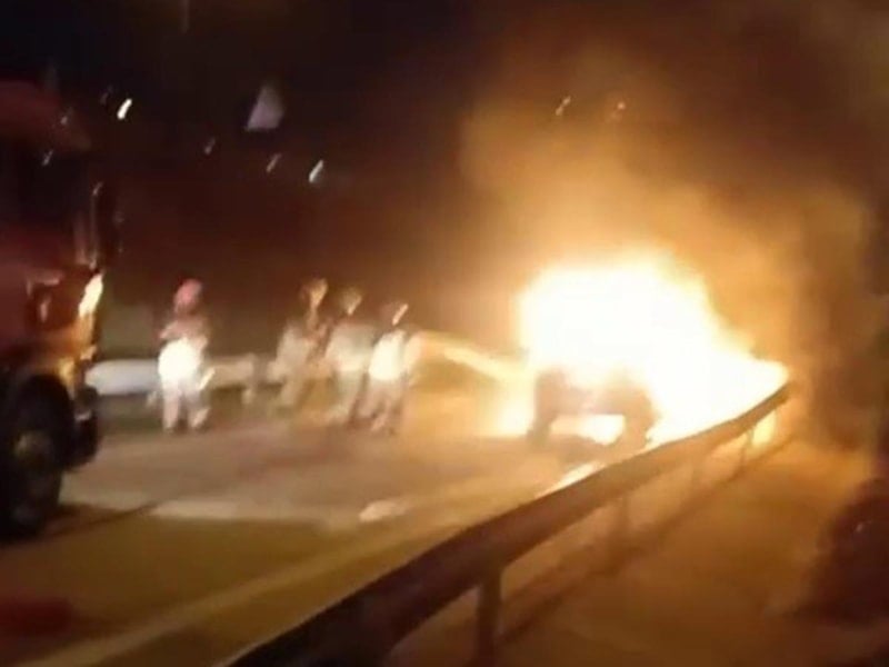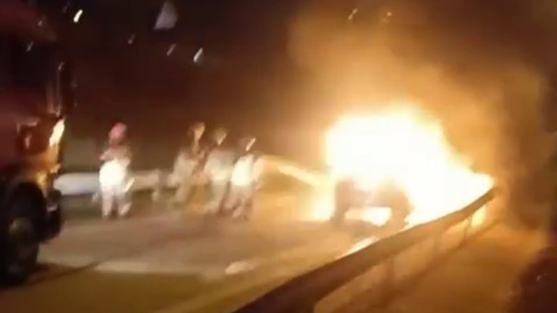Sürücünün aracı kenara çekmesinin ardından alevler bir anda otomobili sardı.