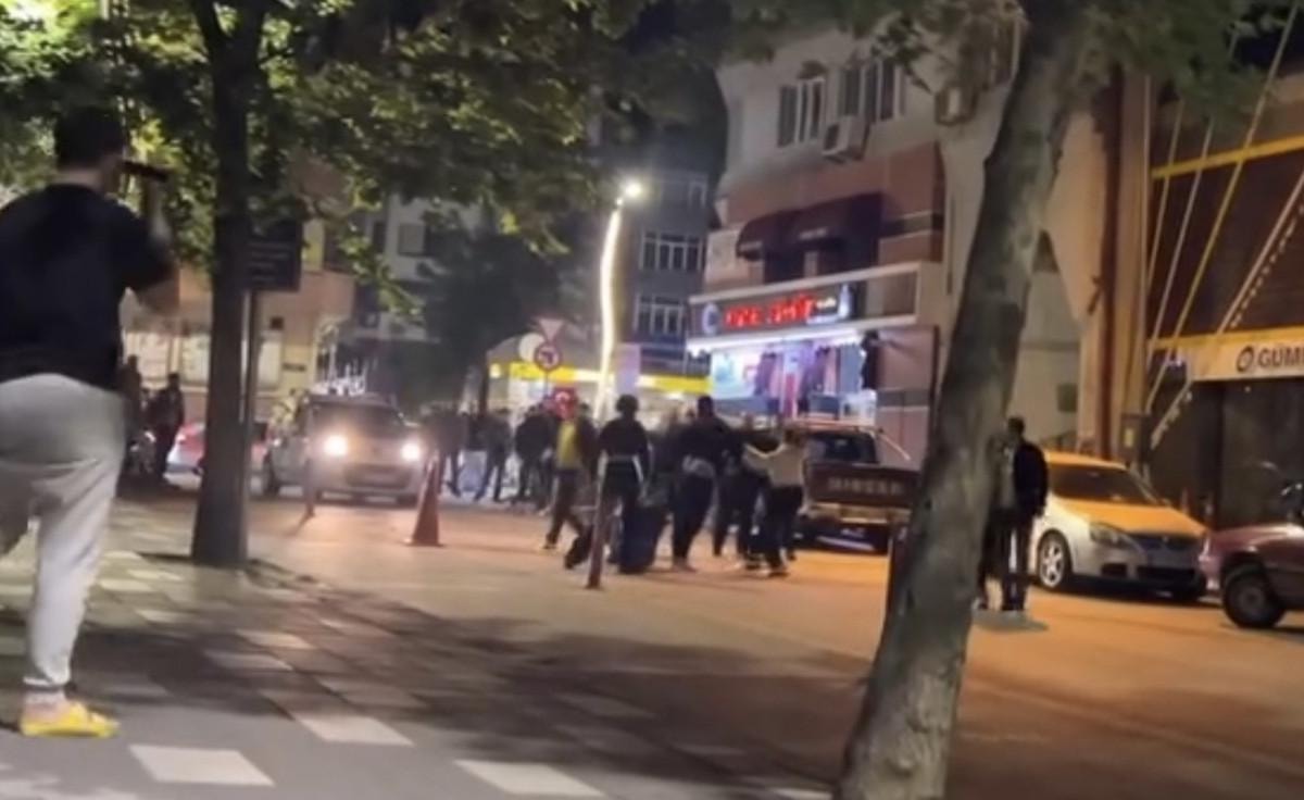 Çevredeki vatandaşların cep telefonu kamerasıyla kaydettiği görüntülerde, tarafların birbirine saldırdığı ve kavganın bir süre sürdüğü görüldü.