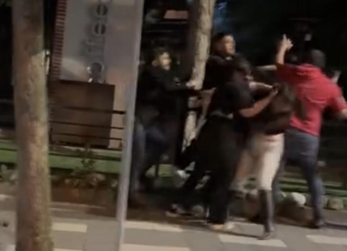 Kız ve erkeklerin de yer aldığı gruplar, birbirine yumruklarla saldırdı.