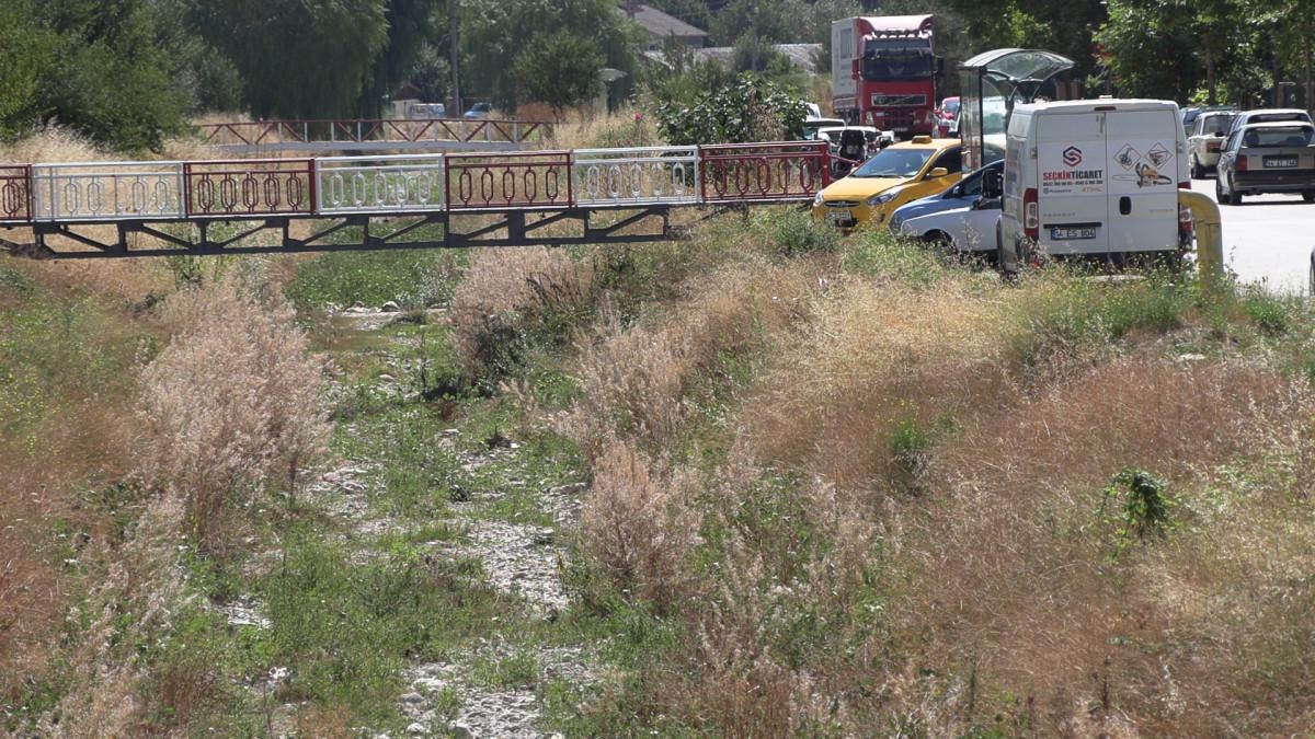 Bolu'da etkili olan sıcak hava nedeniyle Büyüksu Deresi'ndeki su seviyesi, gün geçtikçe düşüyor.