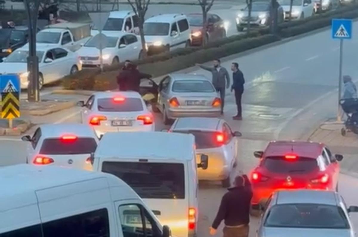 Akşam saatlerinde trafik akışını durduran kavga nedeniyle uzun araç kuyrukları oluştu.