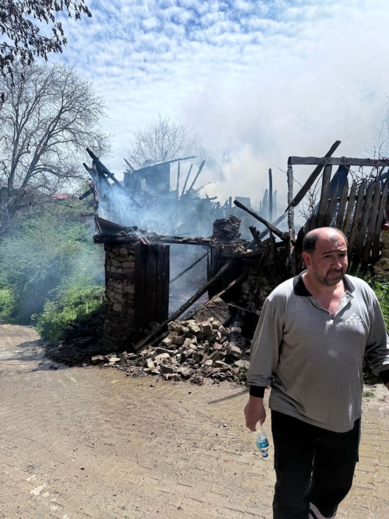 Alevler, bitişik durumdaki 2 ahşap evi ve köy camisinin tamamını sardı.