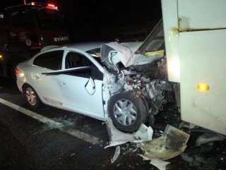 YAVAŞLAYAN YOLCU OTOBÜSÜNE ARKADAN ÇARPTI