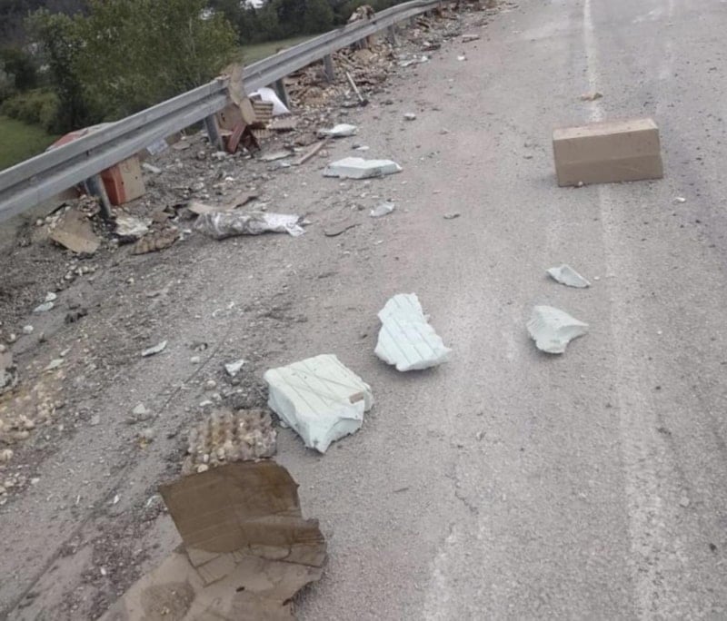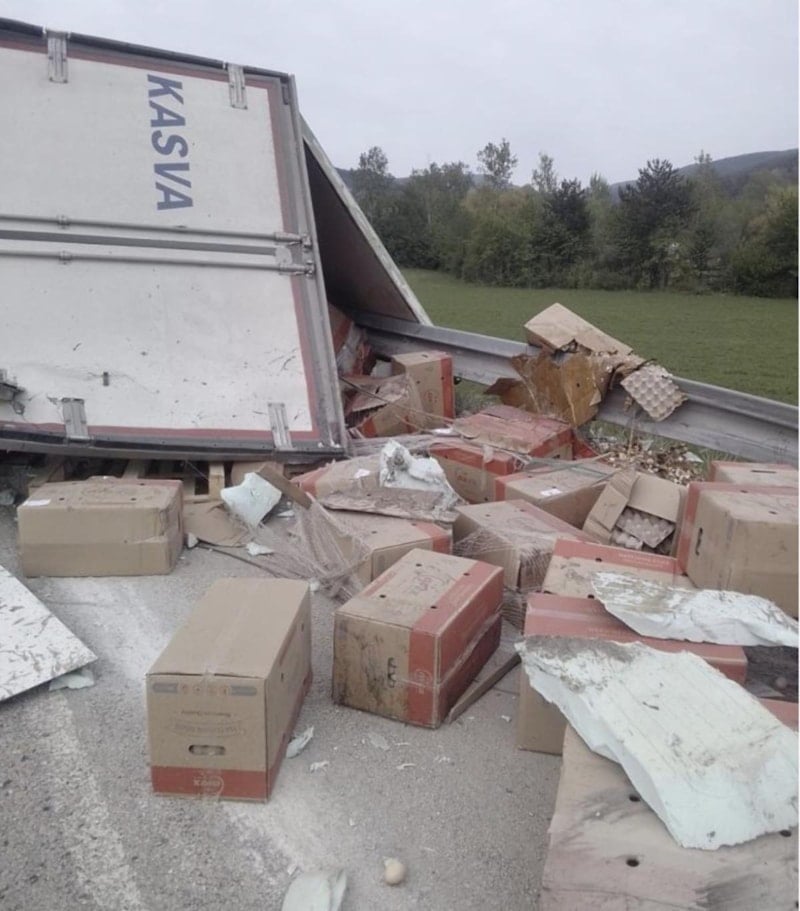 Tırın dorsesinde bulunan yüzlerce yumurta kolisi ise yola savruldu.