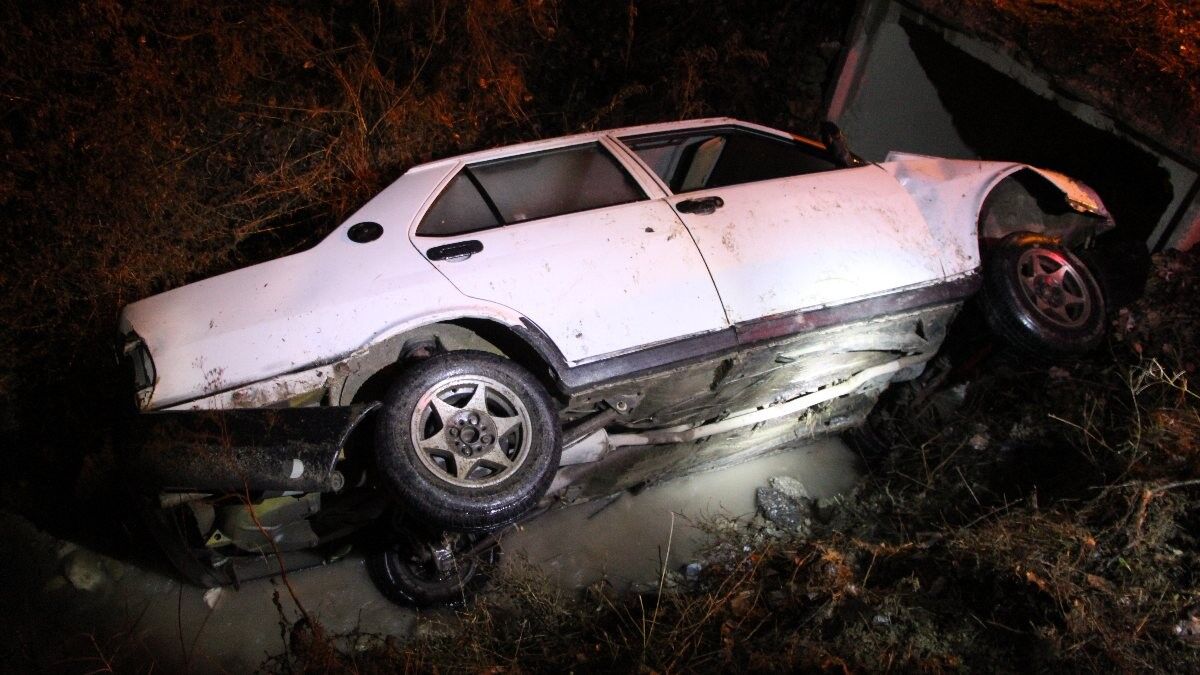 Burdur'da Menderes Mahallesi'nde Mahmut Dönmez idaresindeki araç kanala düştü.