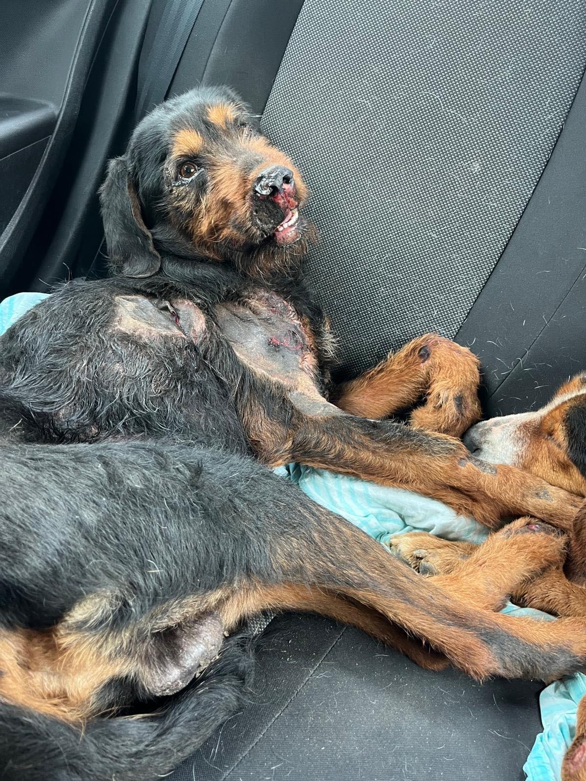 Tüm vücutları asfaltla birleşmiş gibiydi. Gözleri korku içinde bakıyorlardı. Vücutları sürtünmeden kaynaklı ağır doku kaybetmiş. Açık yaraları vardı. Hemen Antalya'da bir veteriner kliniğine naklettik. Çekilen röntgenlerde 'Mucize' ismini verdiğimiz köpeğin bacağından tabanca mermisi çıktı. 'Parla' adını verdiğimiz köpeğin kas dokuları adeta asfalta kazınmıştı." dedi.