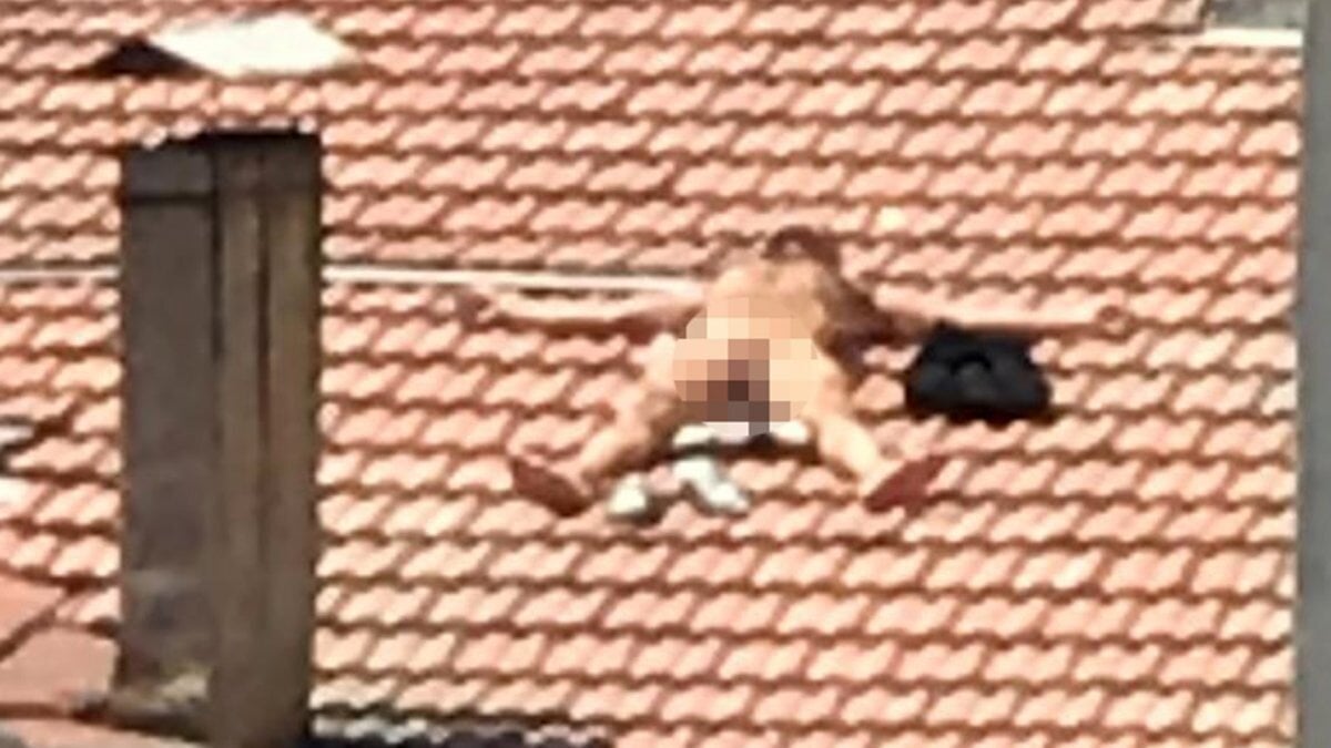 Gelen ekiplerin çatıda aradığı çıplak kişi, saklanırken bulundu.