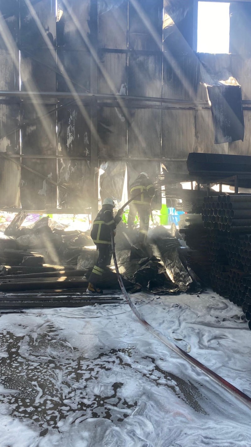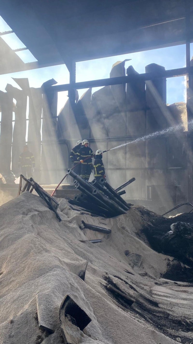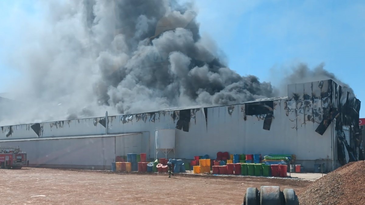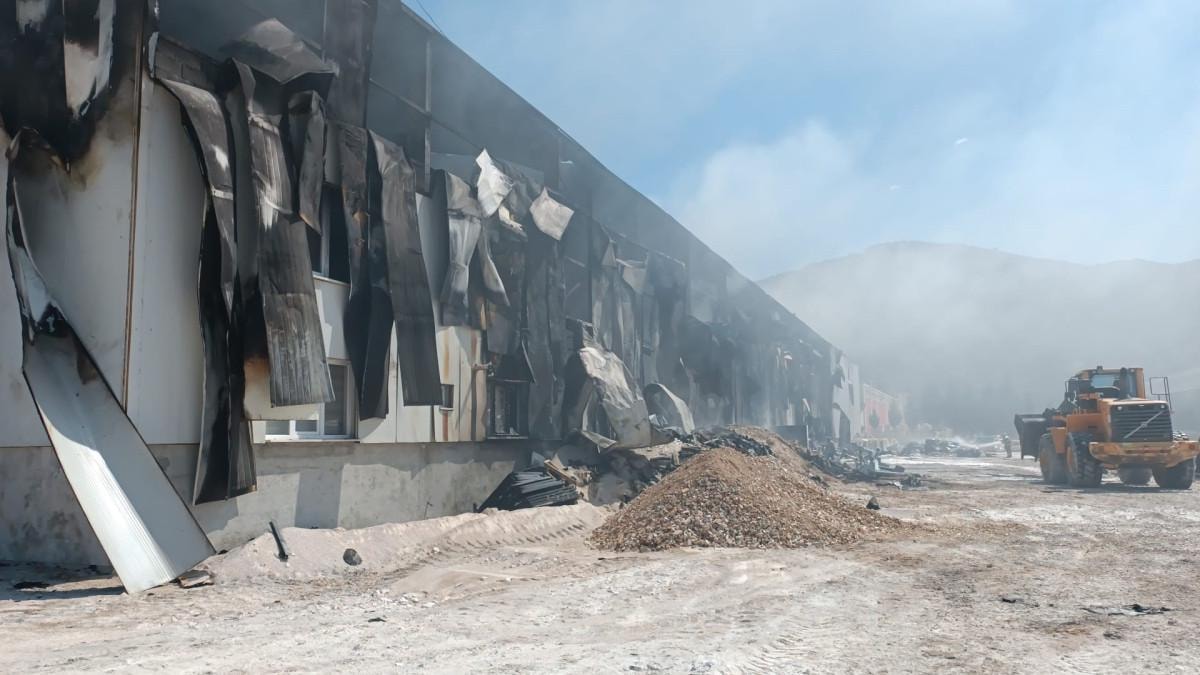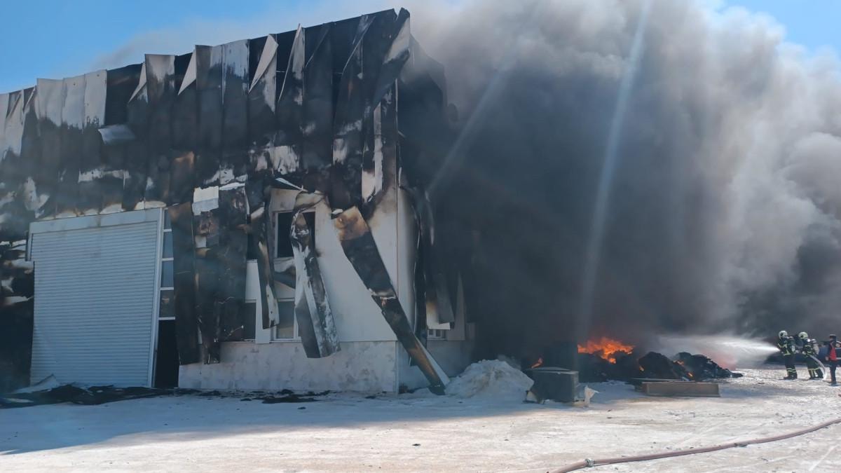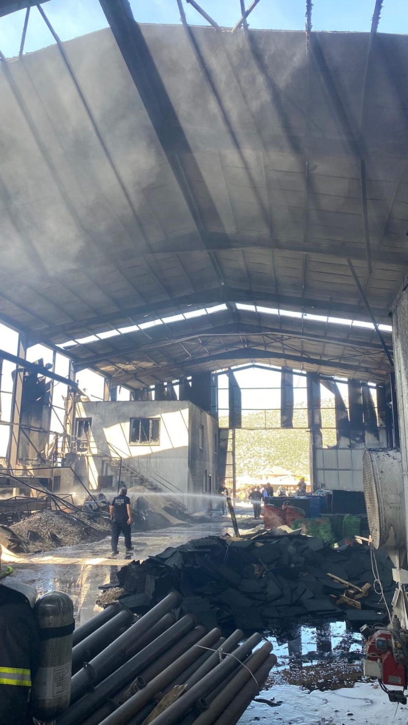 Yangın nedeniyle fabrikada büyük çaplı hasar meydana gelirken soğutma çalışmaları devam ediyor.