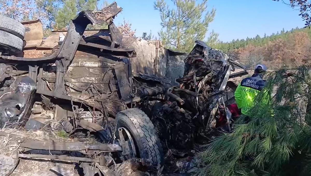 Yokuş aşağı inen kamyon sürücüsü, keskin viraja geldiğinde virajı alamayacağını anlayınca direksiyonu kırarak bariyerleri aşıp ormanlık alana daldı.