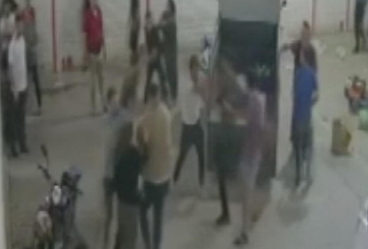 Aile fertlerinin birbirini tekme ve yumrukla darbettiği anlar güvenlik kamerasına yansıdı.