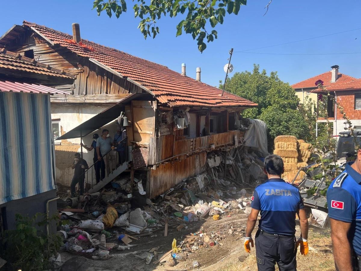 Olay yerine gelen temizlik işleri, fen işleri ve zabıta ekipleri, evde biriken saman balyası, sanayi ve mobilya atıkları ile çeşitli metal parçalarından oluşan çöpleri tahliye ederek toplam 20 kamyon çöp çıkardı.