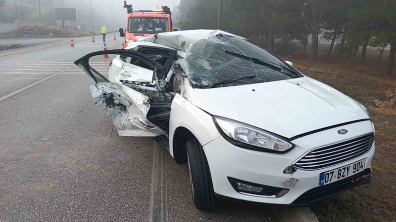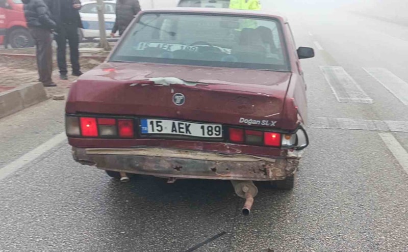 Burdur- Ankara yolu Sanayi Sitesi Kavşağı'nda yoğun sisin etkili olduğu yolda Gökhan Uç idaresindeki otomobil, kırmızı ışıkta bekleyen Karayolları Şube Müdürlüğü'ne ait Hüseyin Biçer yönetimindeki kamyonete çarptı.