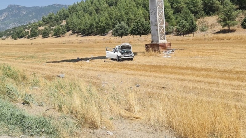 Burdur'un Bucak ilçesi Burdur-Antalya karayolunda 39 yaşındaki İsmahan D. idaresindeki otomobil Antalya istikametinden Bucak istikametine seyir halinde iken önünde seyreden 35 yaşındaki Emre K. yolcu otobüsünü sollamak için sol şeride geçip daha sonra tekrar sağ şeride geçmek isterken otobüsün sol ön kısmına çarparak tarlaya uçtu.