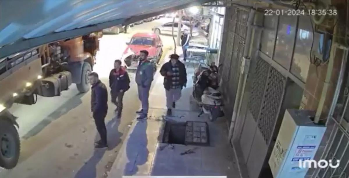 Rögar kapağını açan belediye ekipleri yaklaşan vidanjörü yönlendirdiği sırada kaldırımda yürüyen kişi, açık bacayı fark etmedi.