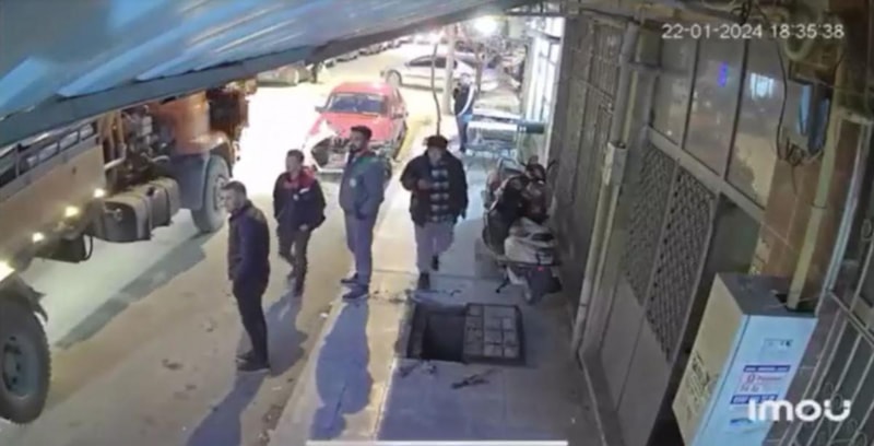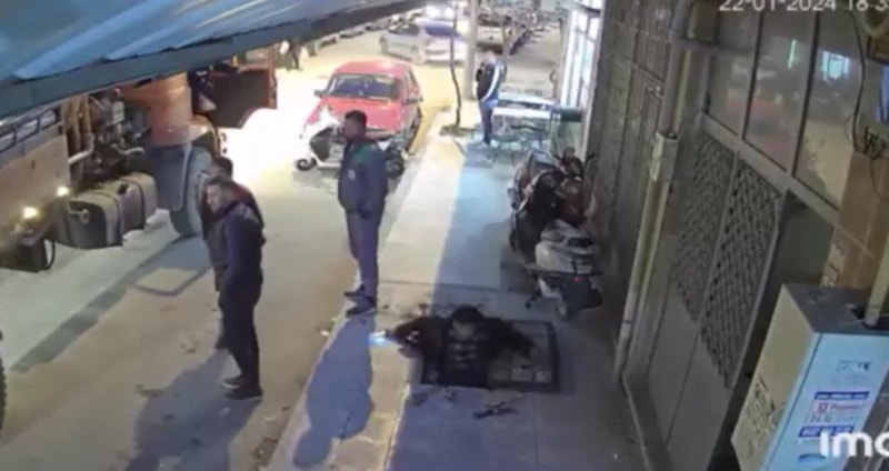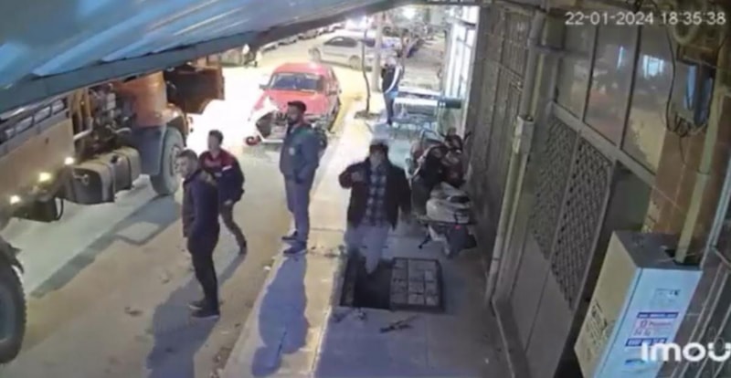 Burdur'da kaldırımda elindeki telefona bakarak yürüyen Afganistan uyruklu kişi, belediye personelinin çalışma yaptığı rögara düştü. O anlar güvenlik kamerasına yansıdı.