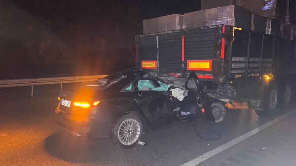 Kazanın şiddetiyle dorsenin altına giren lüks otomobil sürücüsü Bayram Y. ve araçta yolcu olarak bulunan Timurtaş A. (31) araç içerisinde sıkışarak yaralandı.